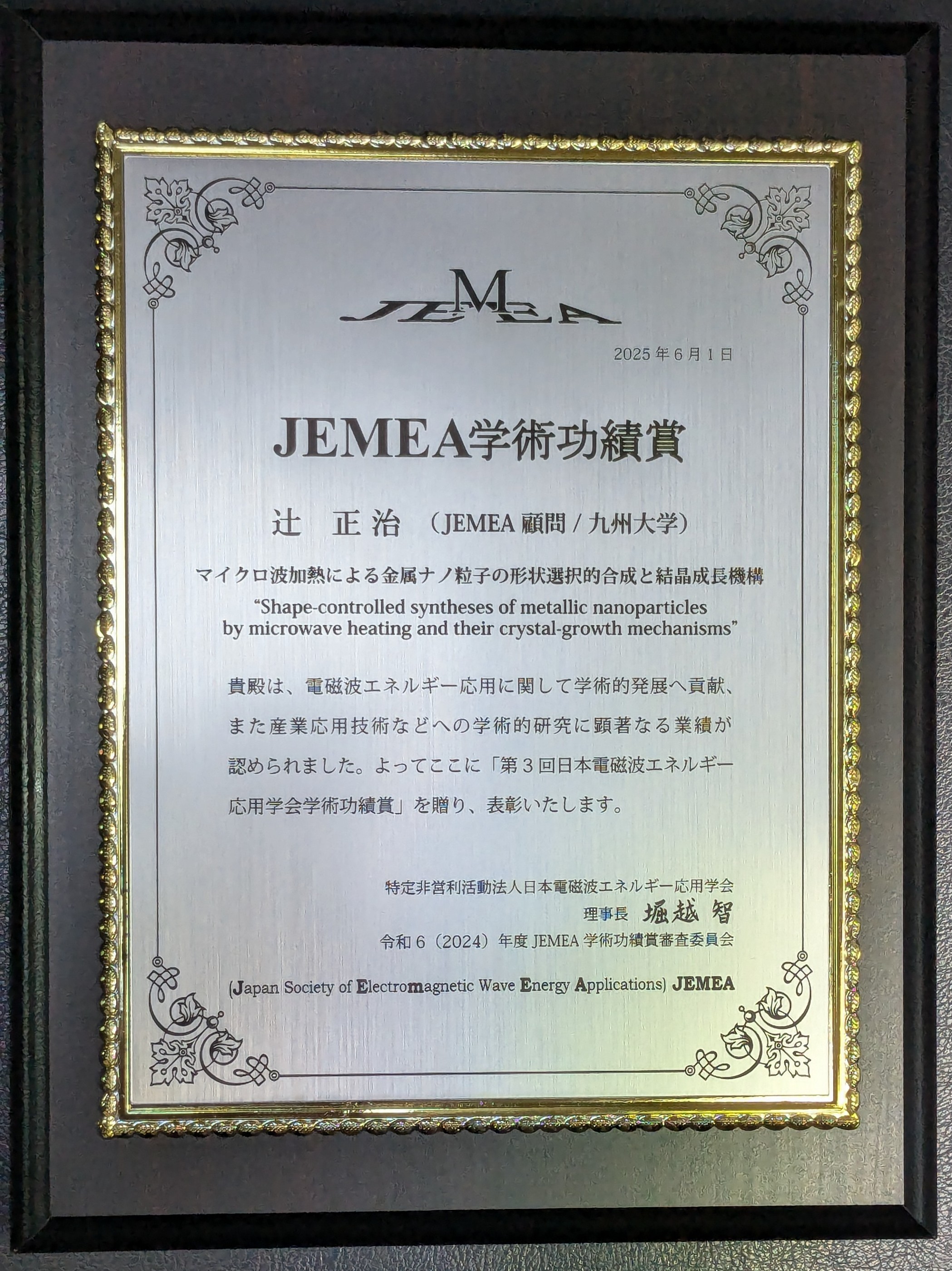 Professor Emeritus Masaharu Tsuji Receives the 3rd JEMEA Academic Achievement Award